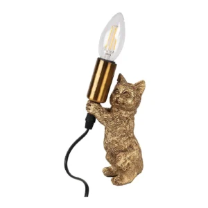 Clayre & Eef 6LMP791 Tischlampe Katze Gold 9x9x18 cm E14 max 40W